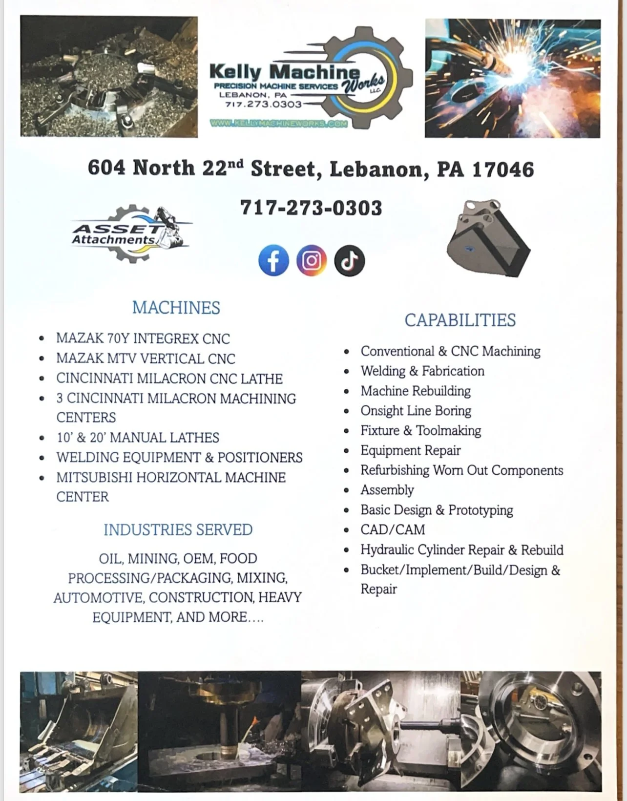 In addition to our core operations, we work with Asset Attachments, another company owned by Heavy Equipment Loaders. Asset Attachments designs and sells high-quality, in-house attachments for heavy machinery, while Kelly Machine Works is responsible for manufacturing these attachments, ensuring they meet the highest standards of durability and performance.
